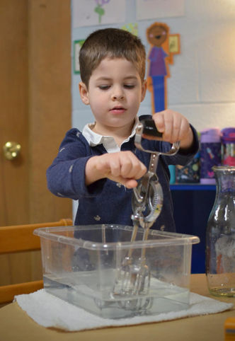 In our preschool, we believe that hands are key to learning, so we create a classroom where children can explore and grow. Kids choose from a range of thoughtfully prepared materials in areas like Math & Science, Language & Alphabetic Principles, Sensory & Motor Skills, Arts & Crafts, and Practical Life Skills.